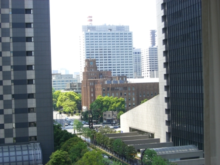 中央の茶色い建物は市政会館・日比谷公会堂。